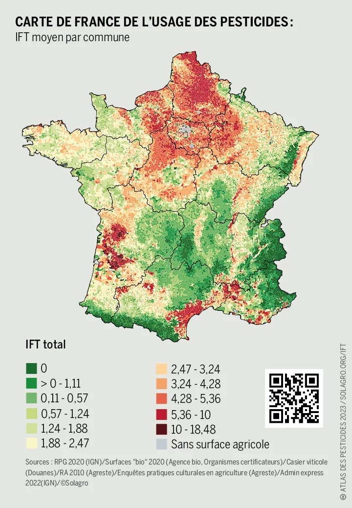 C'est ce que l'on peut découvrir dans le rapport : Atlas des pesticides (réalisé par la Fondation Heinrich Böll, Friends of the Earth Europe, BUND, le Pesticide Action Network Europe et La Fabrique écologique - 2023). Un dossier de 66 pages qui fait un tour d'horizon mondial et complet sur les usages, les conséquences et les moyens pour s'en passer. En page 52, une analyse des usages en France y est documenté :